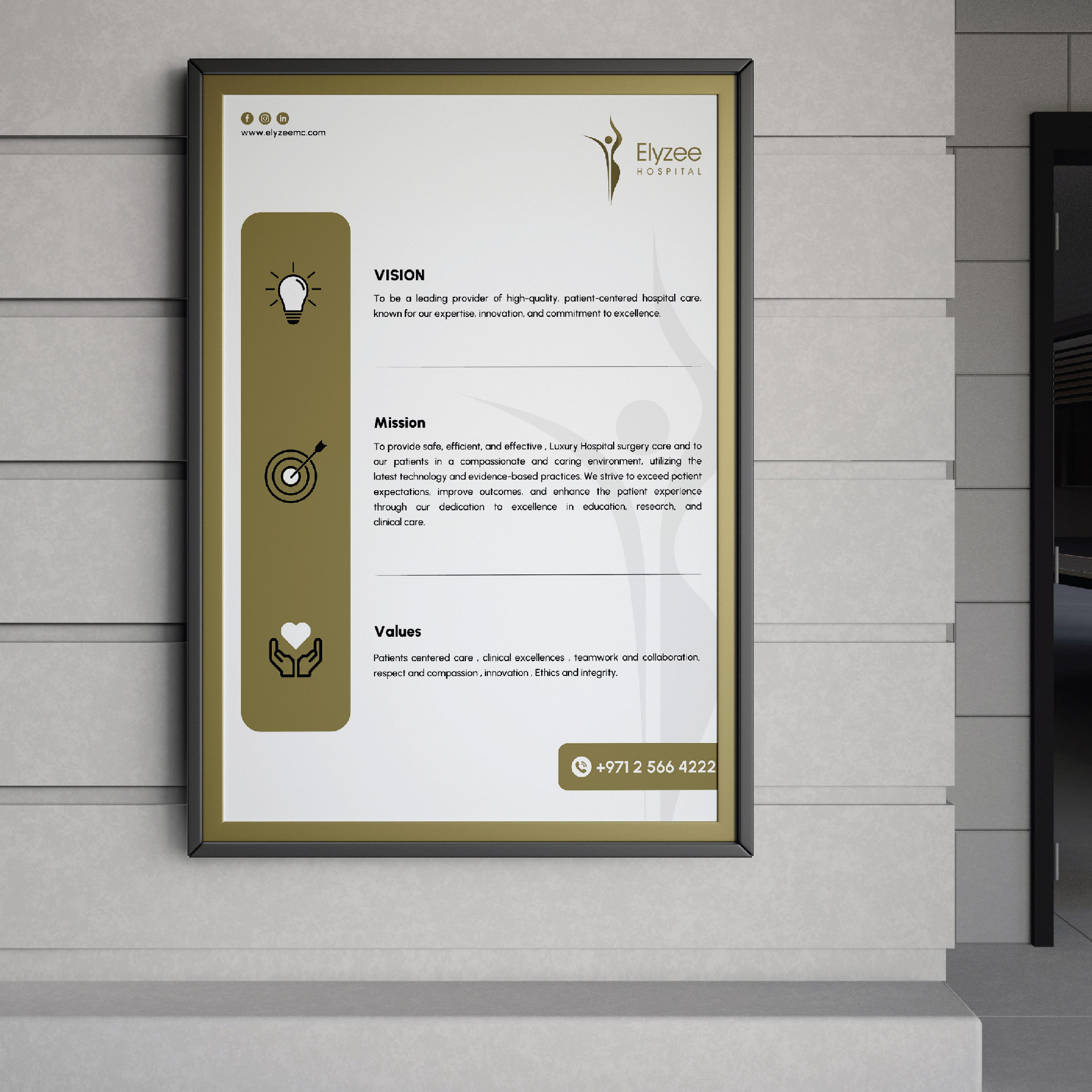 The branding project for Elyzee Hospital has successfully established a cohesive and recognizable brand identity. The logo, typography, and colour palette reflect the hospital›s commitment to professionalism and premium healthcare services. Clear positioning guidelines ensure consistent and impactful logo placement across various platforms. Overall, Elyzee Hospital now stands out as a trusted healthcare provider in Abu Dhabi, UAE, setting it apart from competitors and reinforcing its commitment to excellence