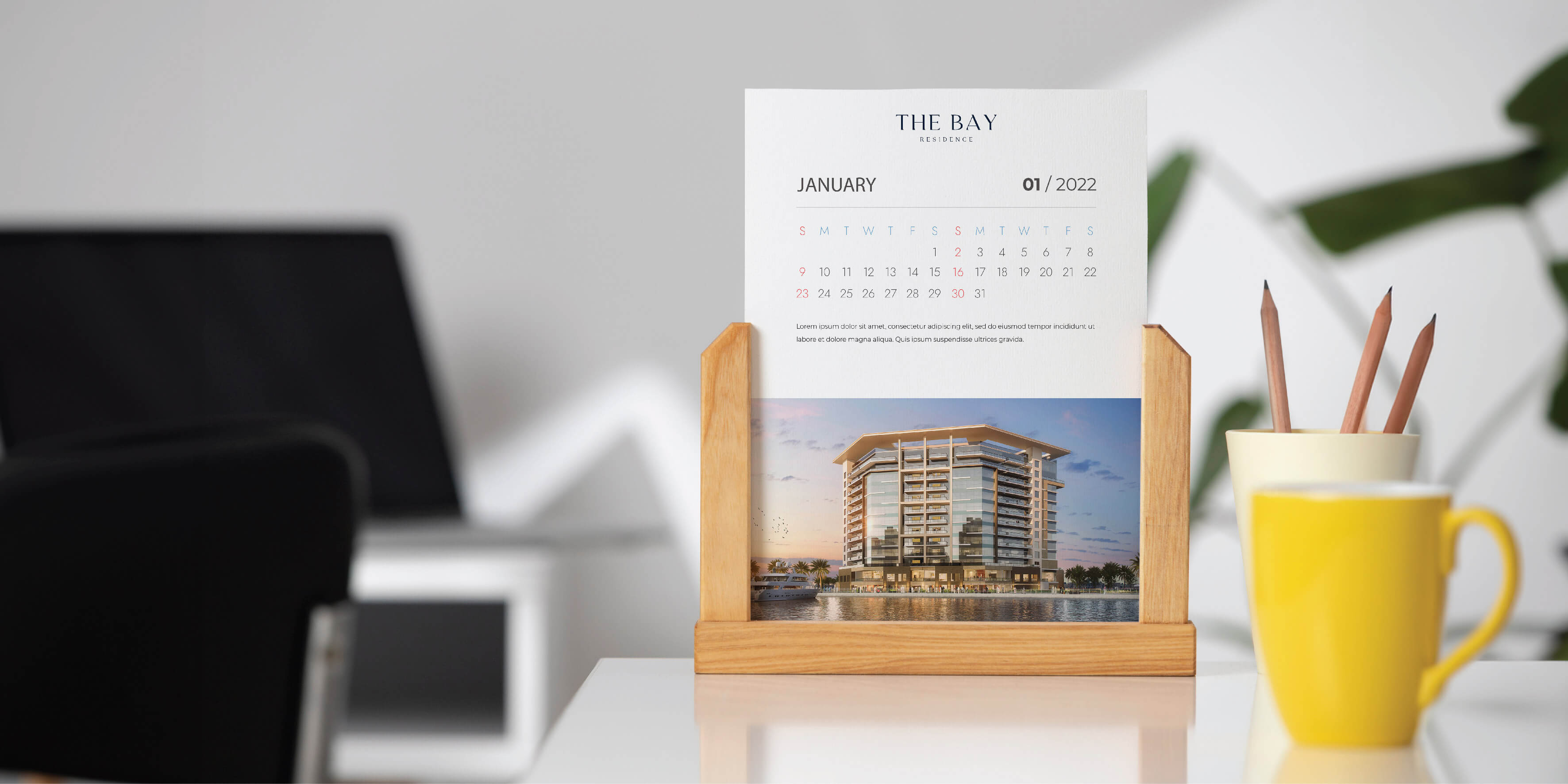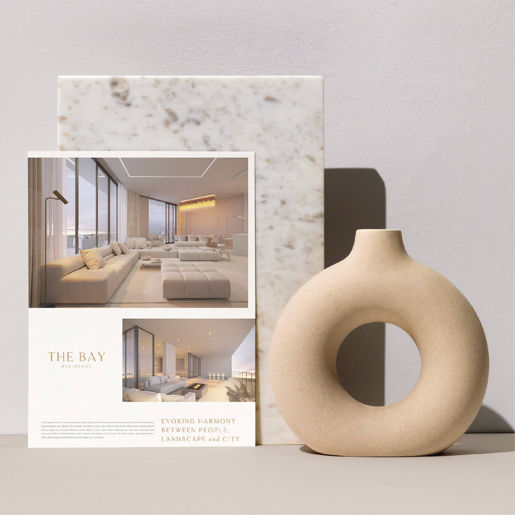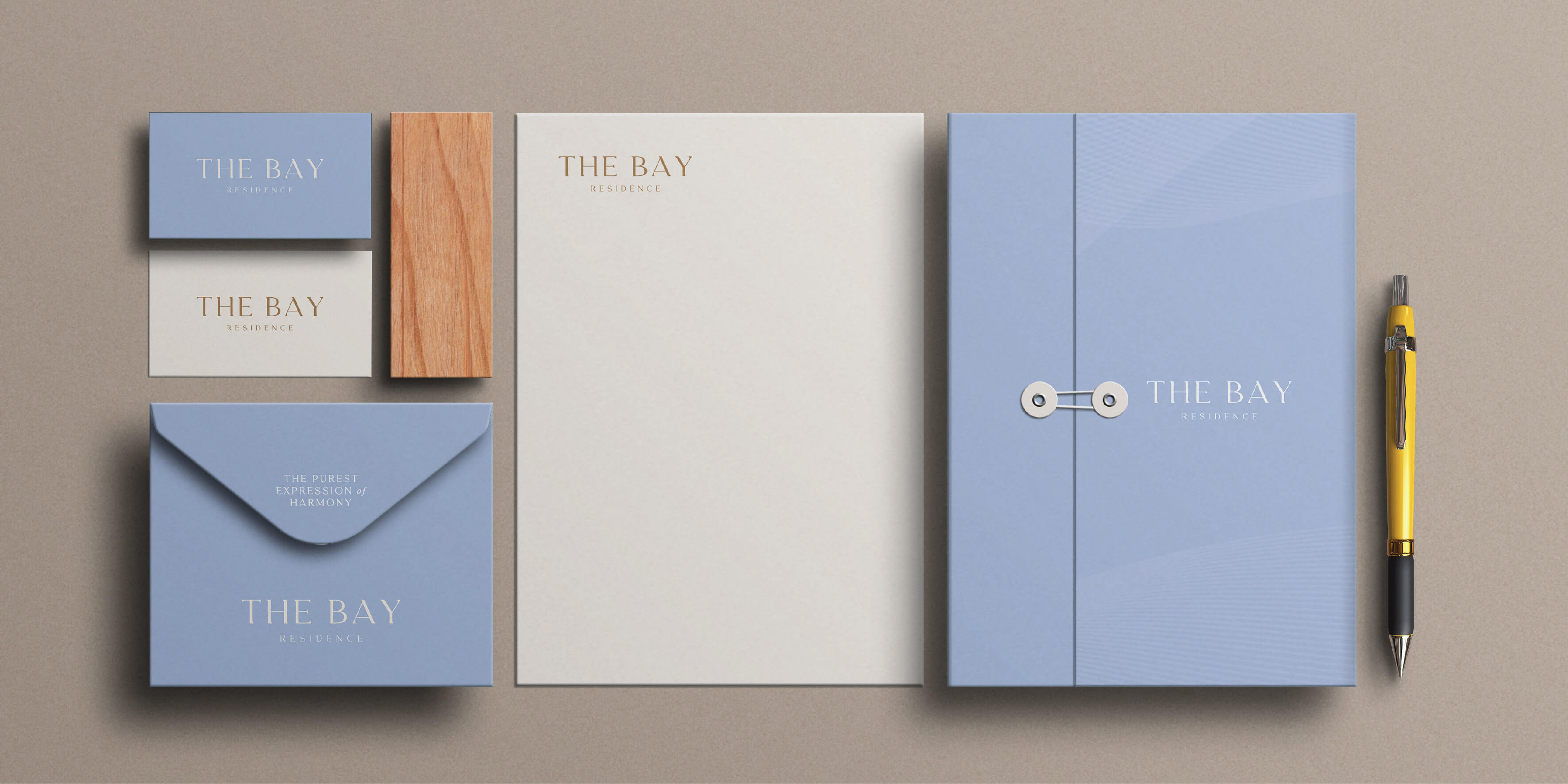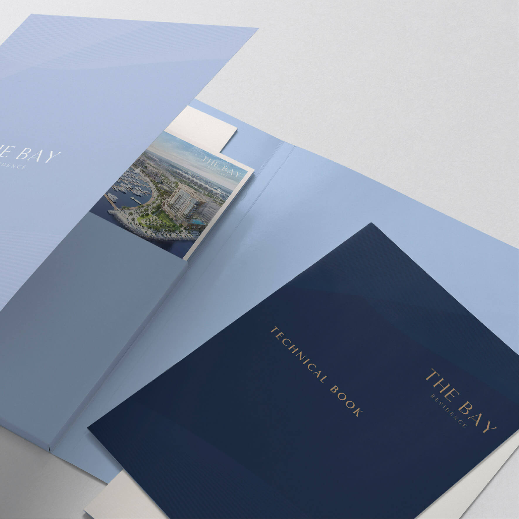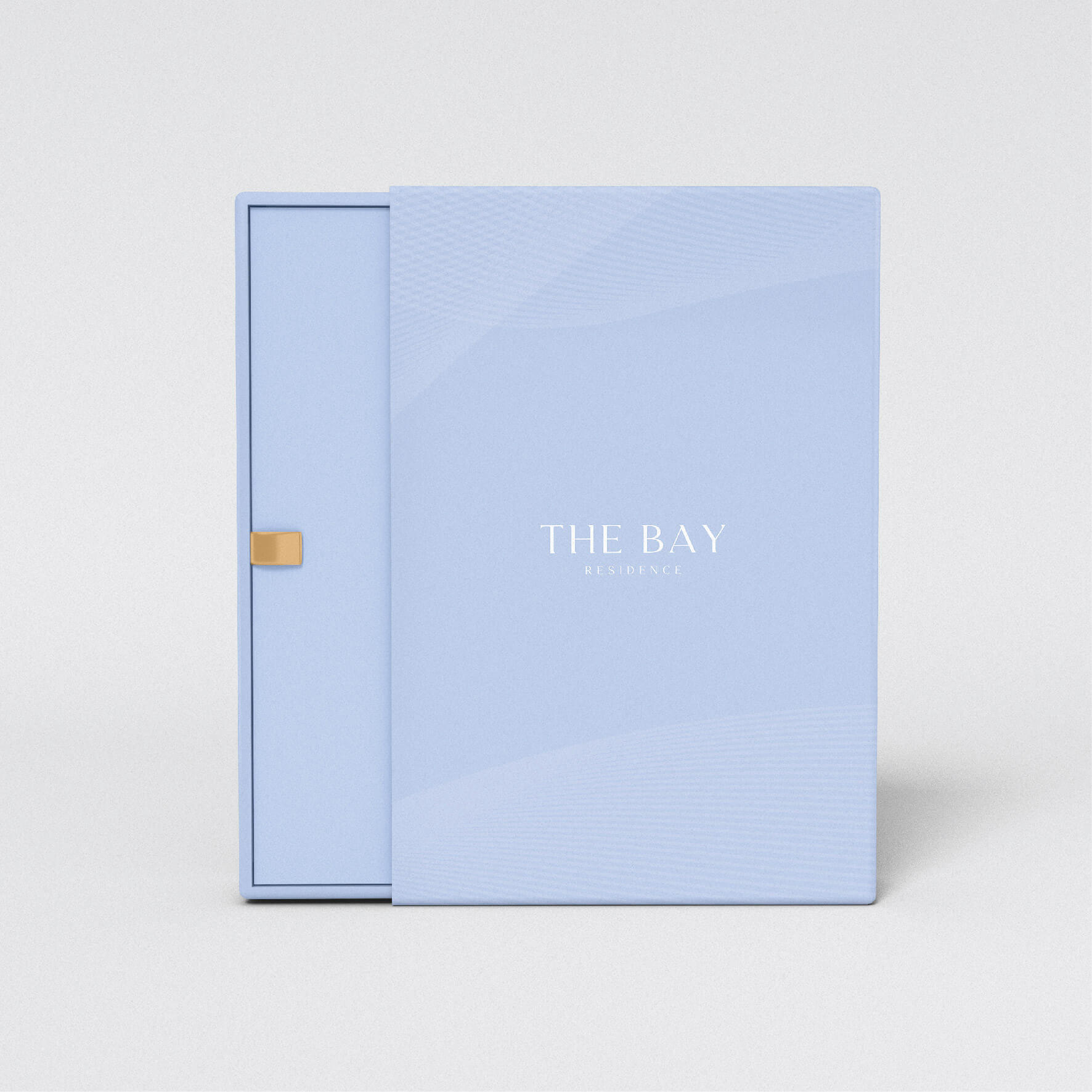 The Investor/Brokers Kit comprises stationery and gifts, showcasing The Bay Residence brandˈs sophistication. Stationery items feature elegant branding, while curated gifts reinforce the luxury experience.