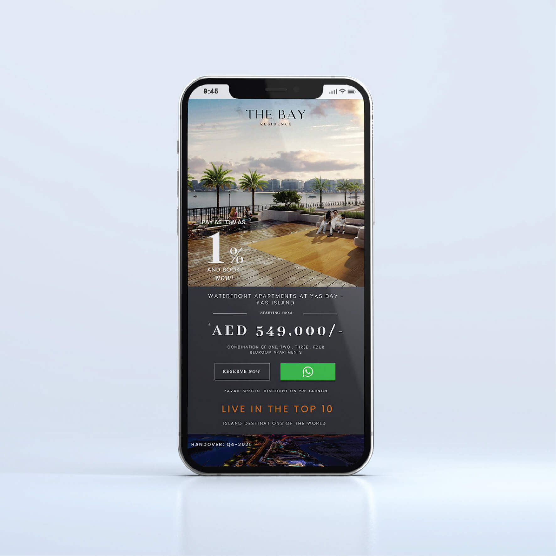 Combining print and digital mediums, our campaign for The Bay Residence showcases stunning visuals of the luxury property against Yas Island›s bay. Targeted messaging and engaging content highlight its exclusive features, positioning it as the epitome of luxury living.