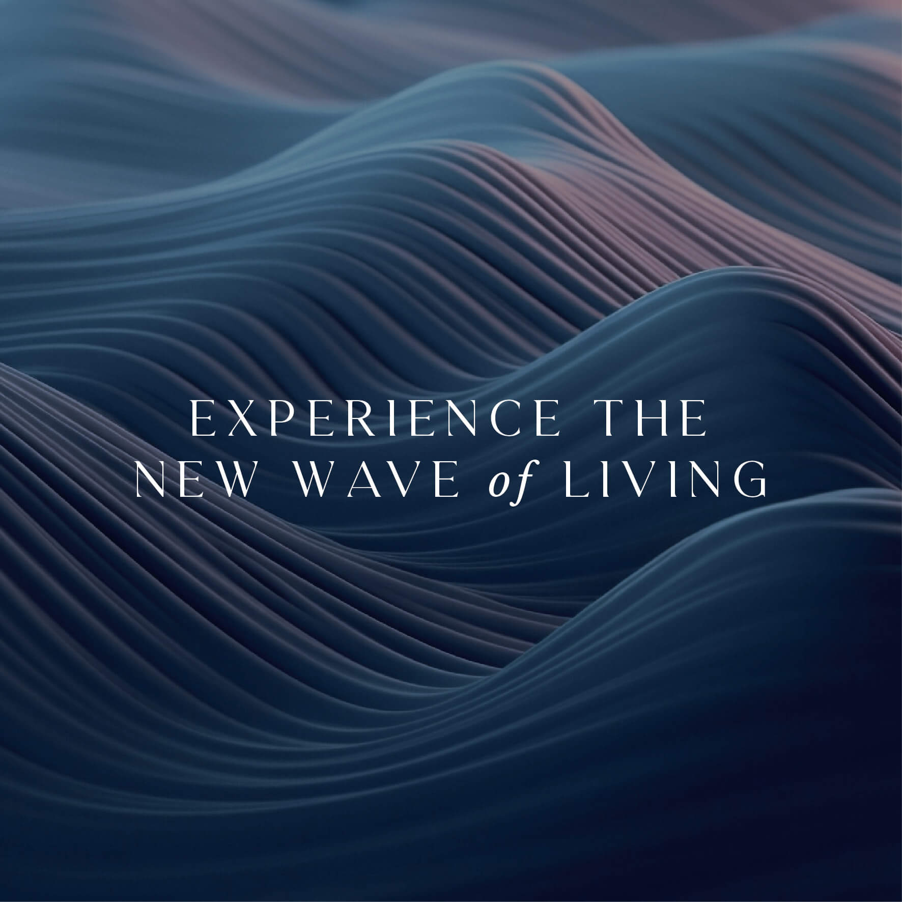 Tagline: "EXPERIENCE THE NEW WAVE of LIVING" Brand Pattern: A seamless golden wave, reminiscent of the waves of the sea, symbolizing luxury, elegance, and the tranquil lifestyle offered by The Bay Residence